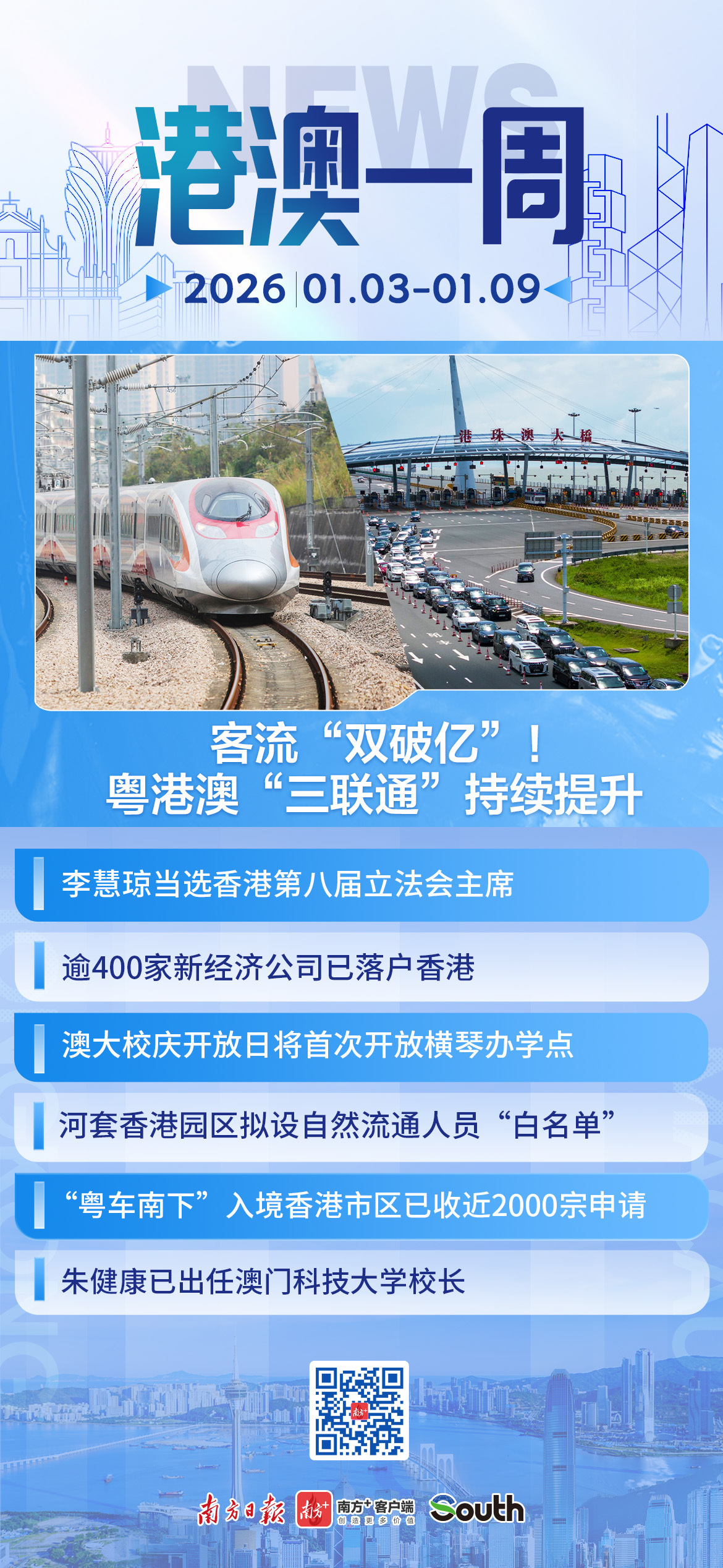 香港特区政府运输及物流局局长陈美宝日前发表网志指,“粤车南下”入境香港市区由2025年12月23日起实施,目前已有近2000宗申请、近400宗预约,相信节日和假日时会特别受欢迎。随着更多申请陆续获批,更多参加者会按出行需要和计划预约来港。详情>>