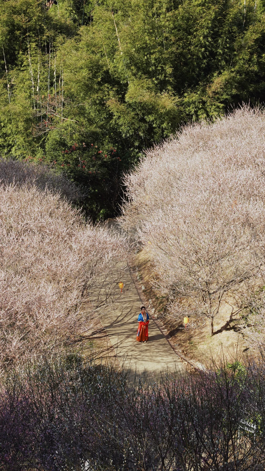 梅林沿山势绵延铺展,远观宛如皑皑白雪覆盖山峦。