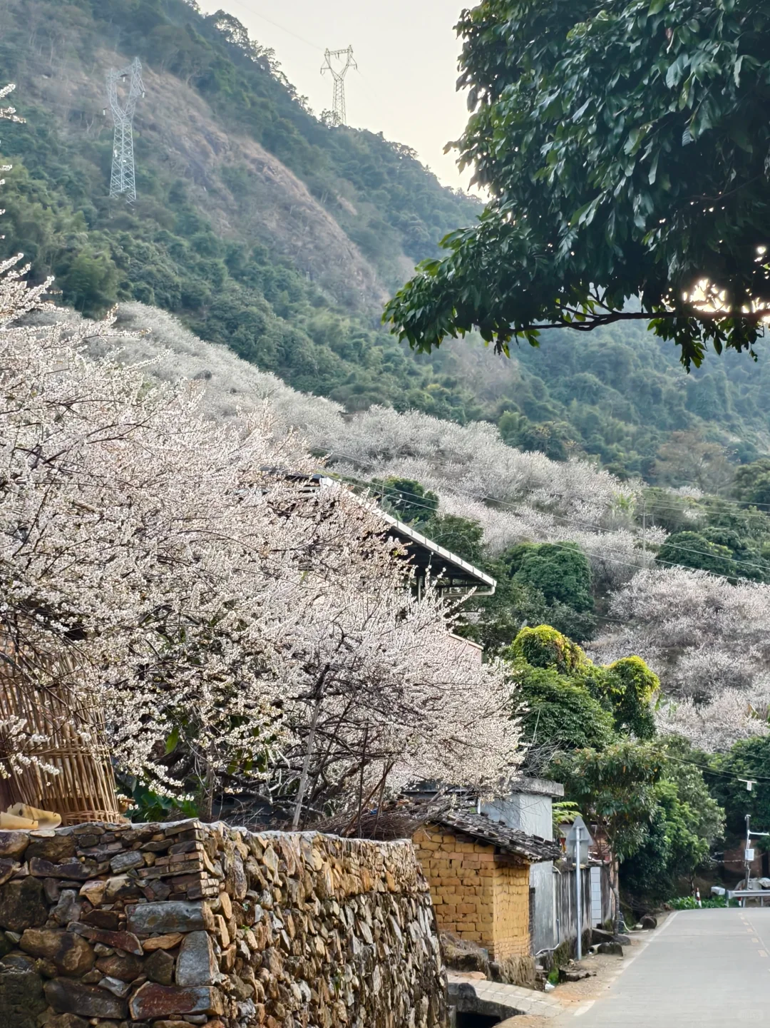 远远望去,整片山峦仿佛被白雪覆盖,走近细看,枝头花朵竞放、蜂舞其间,随手一拍就是风景画。