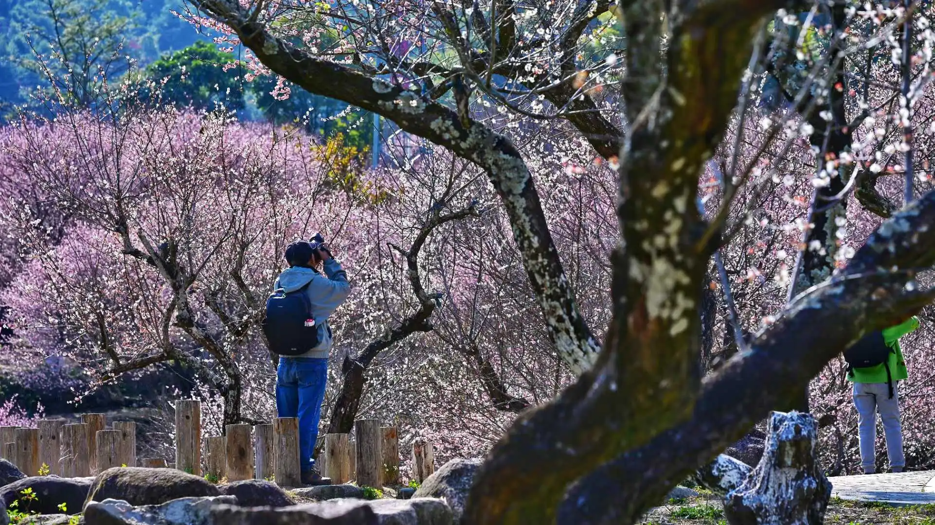 罗浮山“梅山别梦”景区近千株梅花已进入花期,徒步赏梅正当时。