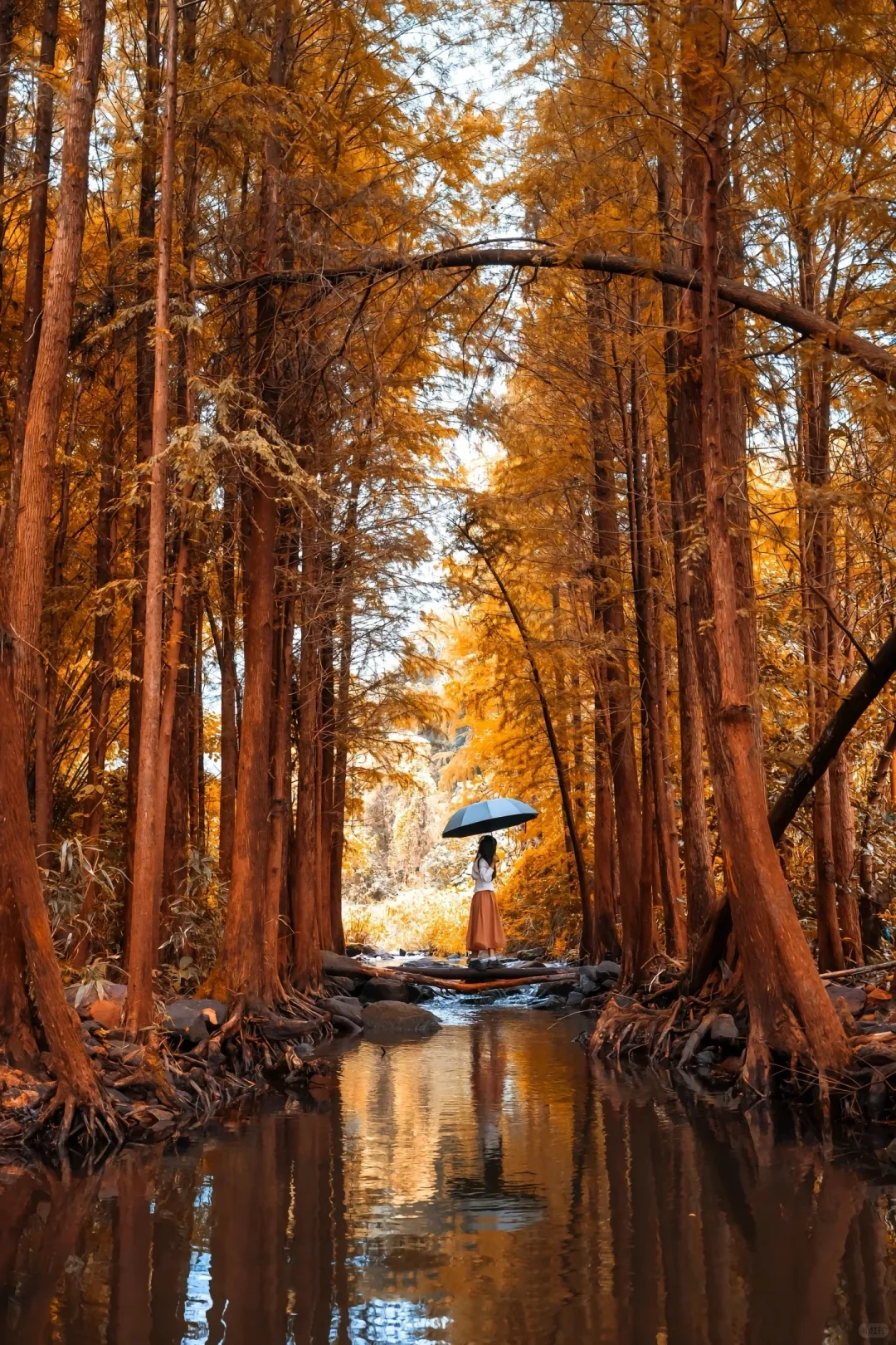 除了梅林的梅花,马峦山还有焦黄摇曳的落羽杉,一地可赏双景,冬意与诗意并存,正适合闲暇时漫步其间。