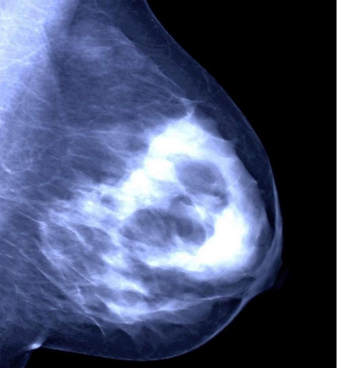 ②乳腺钼靶:有点像给乳房拍“X 光片”,能发现一些超声看不到的细小钙化,对40岁以上女性筛查乳腺癌很有帮助。