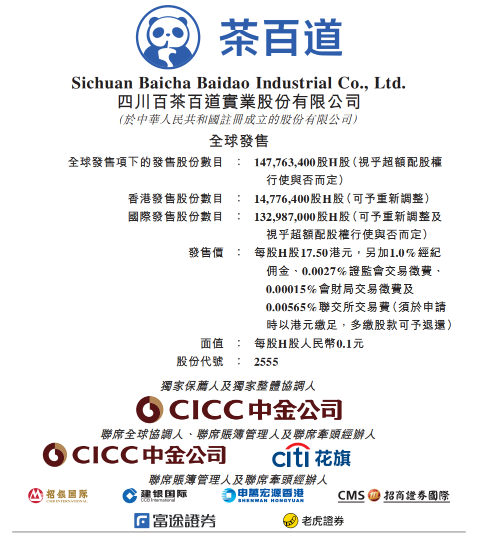 随着一声锣响,今早,新茶饮品牌“茶百道”母公司四川百茶百道实业股份有限公司(以下简称“茶百道”)正式在港交所主板挂牌上市,股票代码2555.HK。
