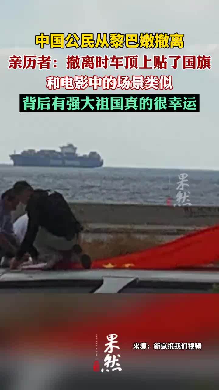中国公民从黎巴嫩撤离时车顶贴国旗:背后有强大祖国真的很幸运