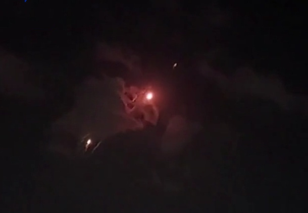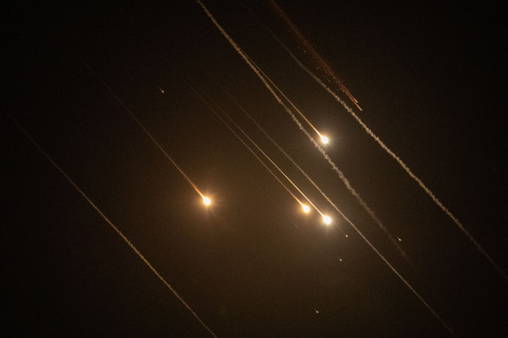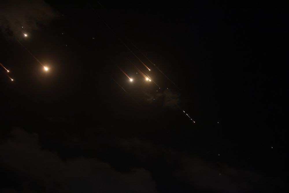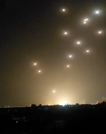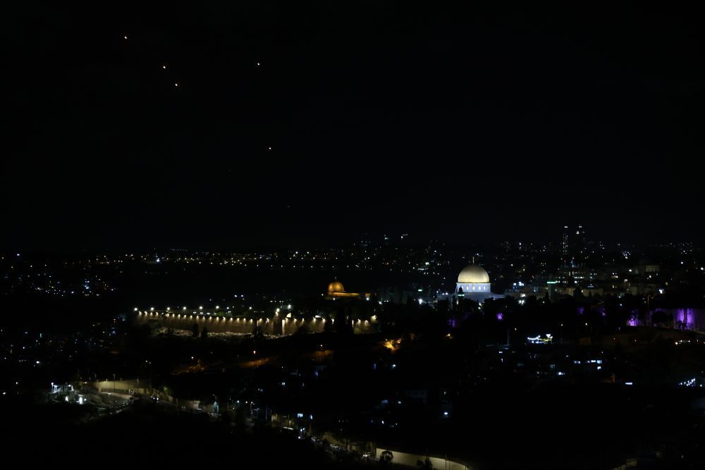 △10月1日,以军防空系统拦截的发射物从耶路撒冷上空飞过。新华社