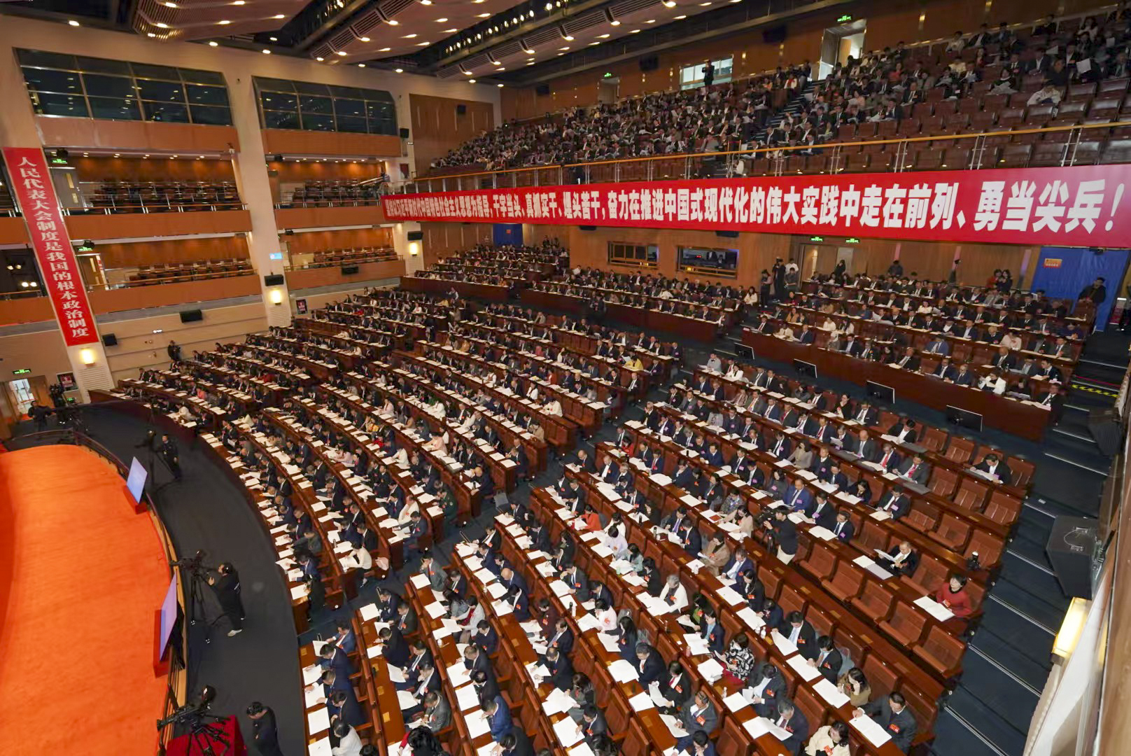 “我们要像善于搏击风浪的海燕一样,勇于迎接挑战,坚持干字当头、知重负重,充分利用各方面积极因素,努力以高质量发展的步步推进,赢得现代化建设的节节胜利。”覃伟中说。