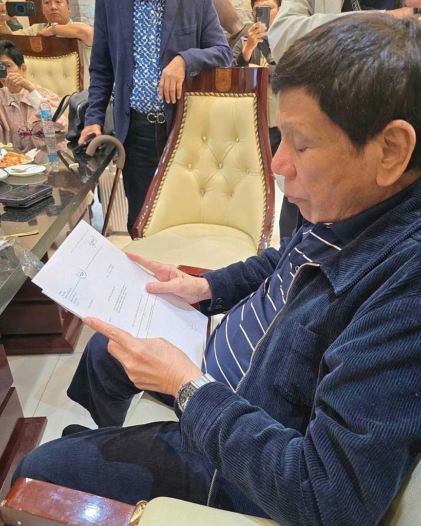 杜特尔特11日上午从境外返回菲律宾,抵达马尼拉国际机场后被菲警方拘留。有关方面向他出示了国际刑事法院的逮捕令,当晚他被送上飞往海牙的飞机。