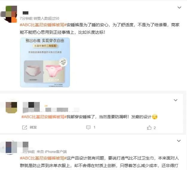 有网友表示,安睡裤是为了睡得安心,为了舒适度,希望商家把心思用长度达标等事情上。也有网友直言不讳地表示,“我都穿安睡裤了,当然是要防漏啊!”