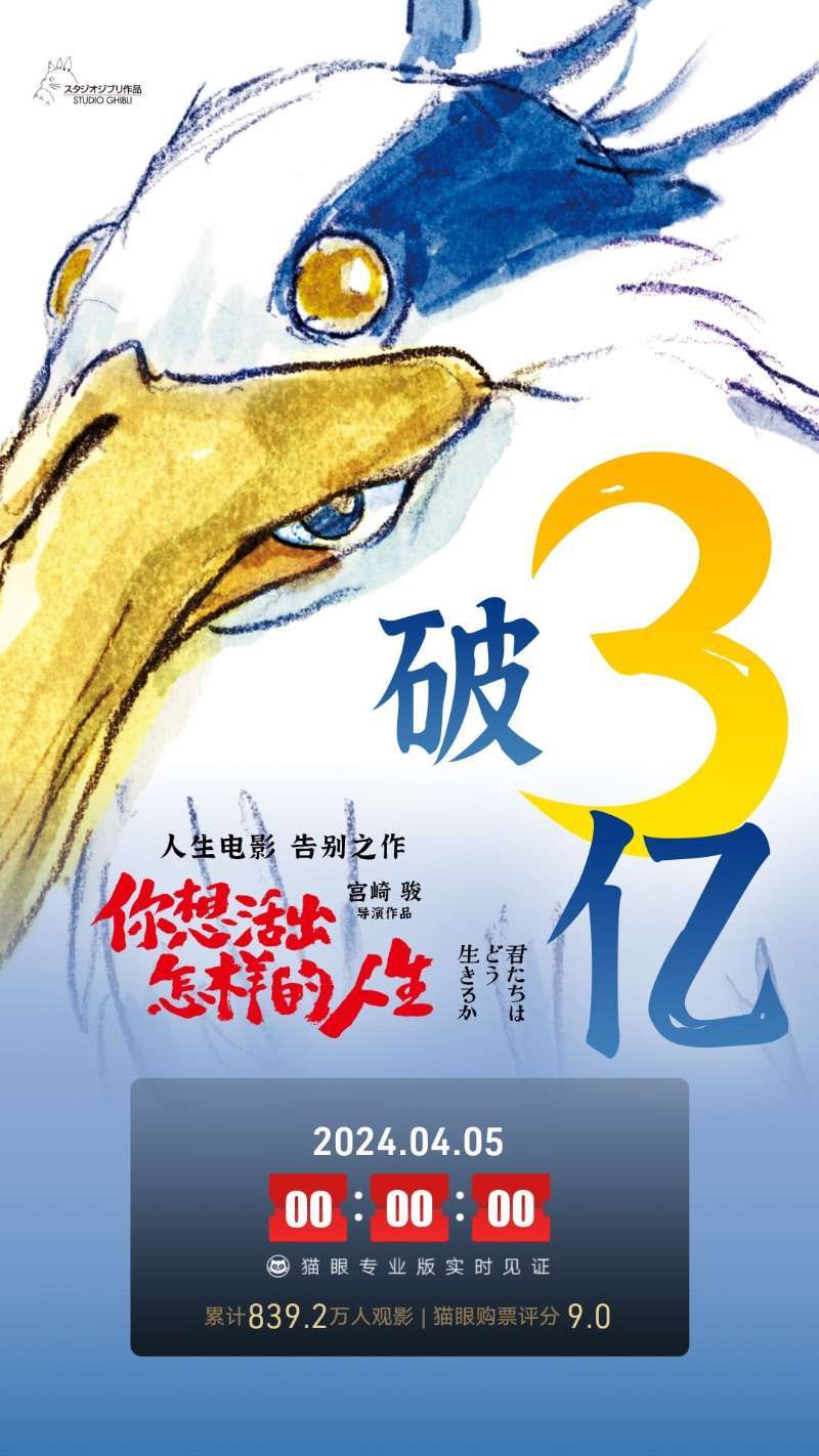 今年清明档共有8部新片上映(点击查看清明档观影指南>>),其中《你想活出怎样的人生》表现最为亮眼,目前实时票房已突破3亿元,稳坐清明档票房榜首位。该片为日本著名动画导演宫崎骏时隔十年带来的新作,并在刚刚落幕的第96届奥斯卡颁奖礼上一举夺得最佳动画长片奖。影片维持了宫崎骏独有的治愈画风以及富含哲理的叙事,并请来山时聪真、菅田将晖、木村拓哉等一众日本知名艺人参与配音。据猫眼专业版数据,电影《你想活出怎样的人生》清明节单日票房破1.64亿元,超《头号玩家》清明节票房成绩,成为中国影史清明节票房冠军。