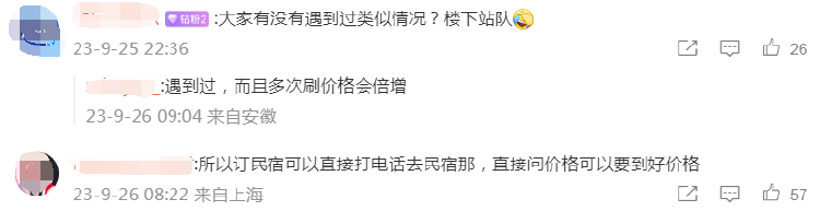 网友表示:也遇到过这样的情况,而且多次刷价格会倍增。也有网友建议订民宿可以直接打电话先询问,觉得价格合适在下单。