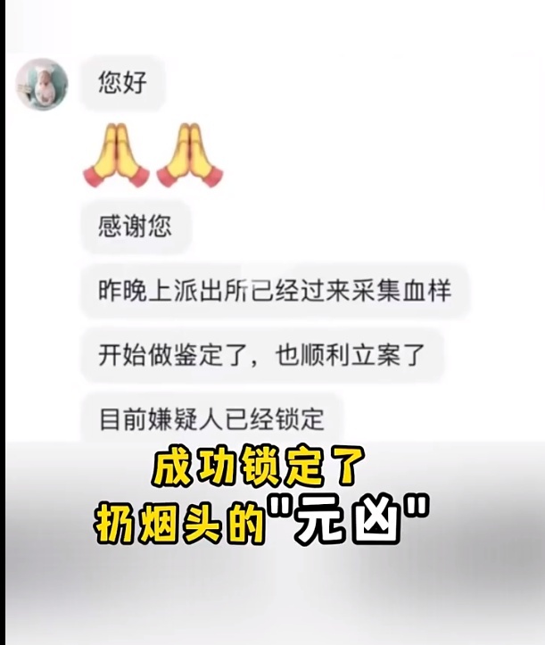 据悉,警方事后对事发单元楼的所有住户进行了采血调查并与烟头上的DNA进行了比对。最后,成功锁定了扔烟头的“元凶”。