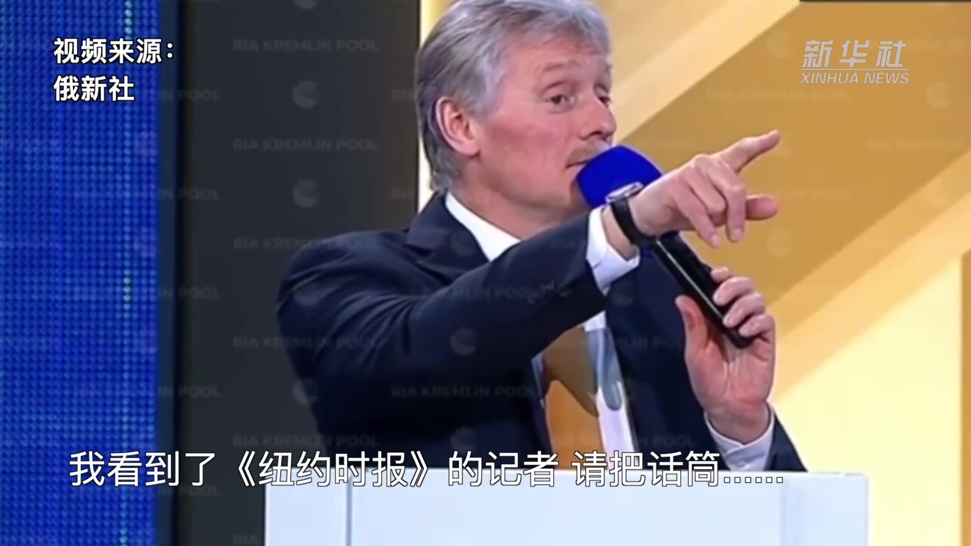 在普京的这场年度新闻发布会上,总统新闻秘书佩斯科夫原本点名《纽约时报》记者提问,但他被普京打断:“不,请新华社记者先提问,然后再让《纽约时报》问。”