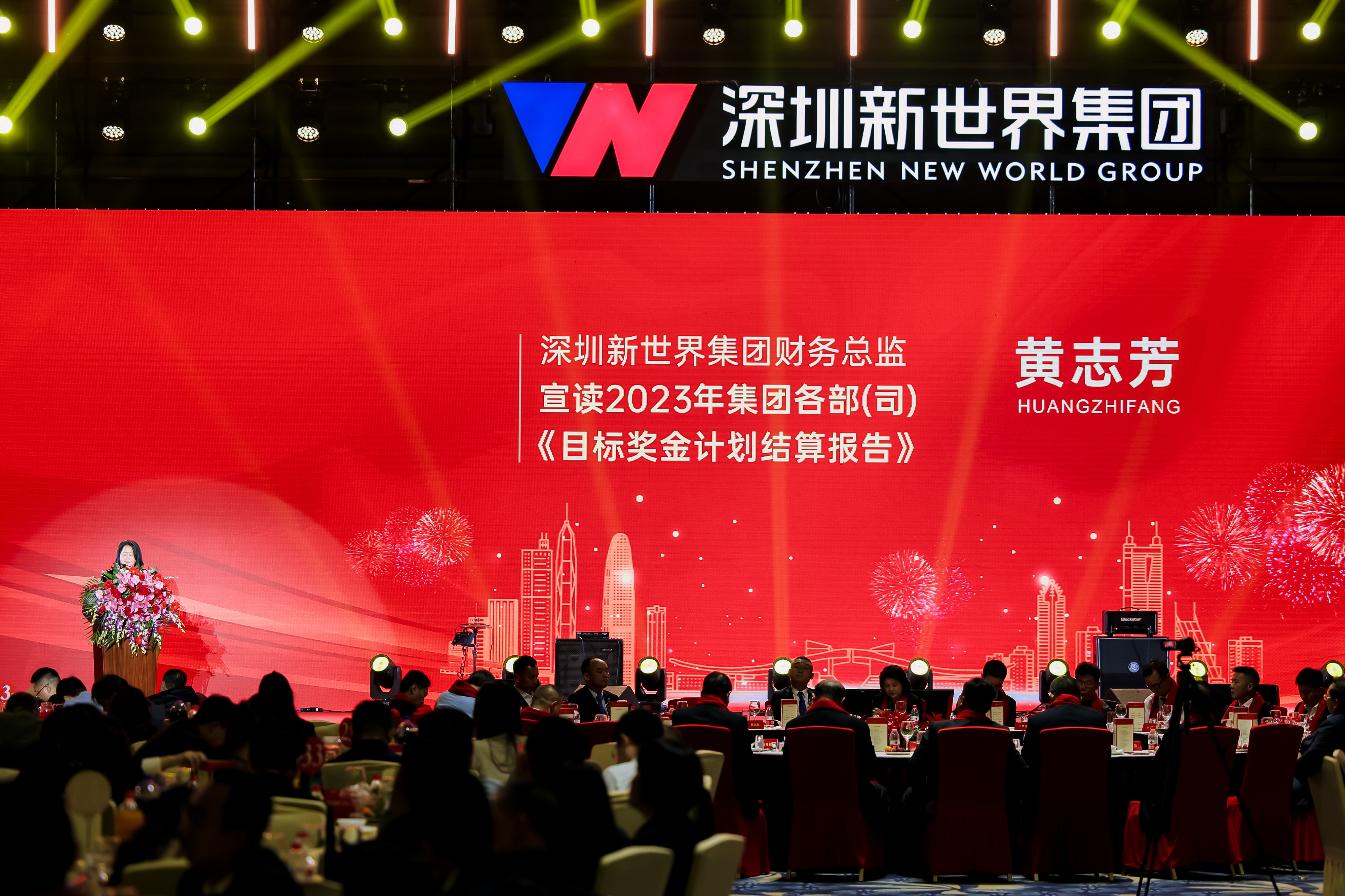 深圳新世界集团财务总监黄志芳女士宣读2023年度集团各部、司《目标奖金计划结算报告》。