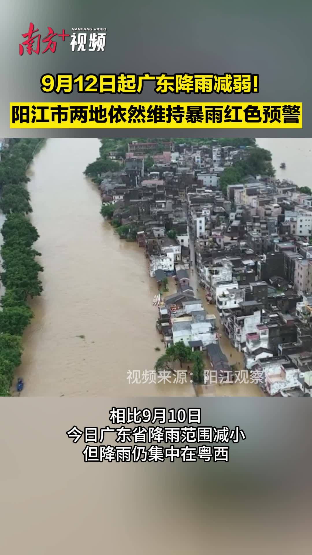 明起广东降雨减弱,阳江市阳春、阳西依然维持暴雨红色预警