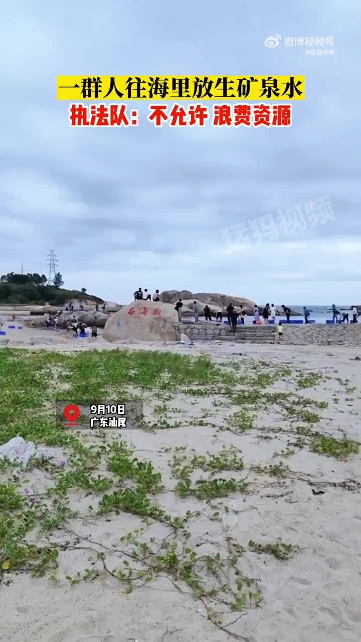 陆丰多人在海边“放生”矿泉水,镇政府称将核实情况