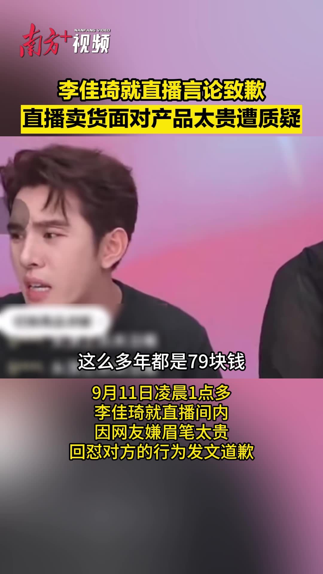 9月11日凌晨,网络主播李佳琦在其个人微博就直播发表不当言论一事致歉称,自己昨天在直播间回应产品评论时,说了些不恰当、不舒服的话,诚恳接受大家的批评。据悉,在9月10日的直播中,李佳琦介绍79元一支的花西子眉笔时称,看到有网友留言说越来越贵了,李佳琦说:“有的时候找找自己原因,这么多年了工资涨没涨,有没有认真工作?”