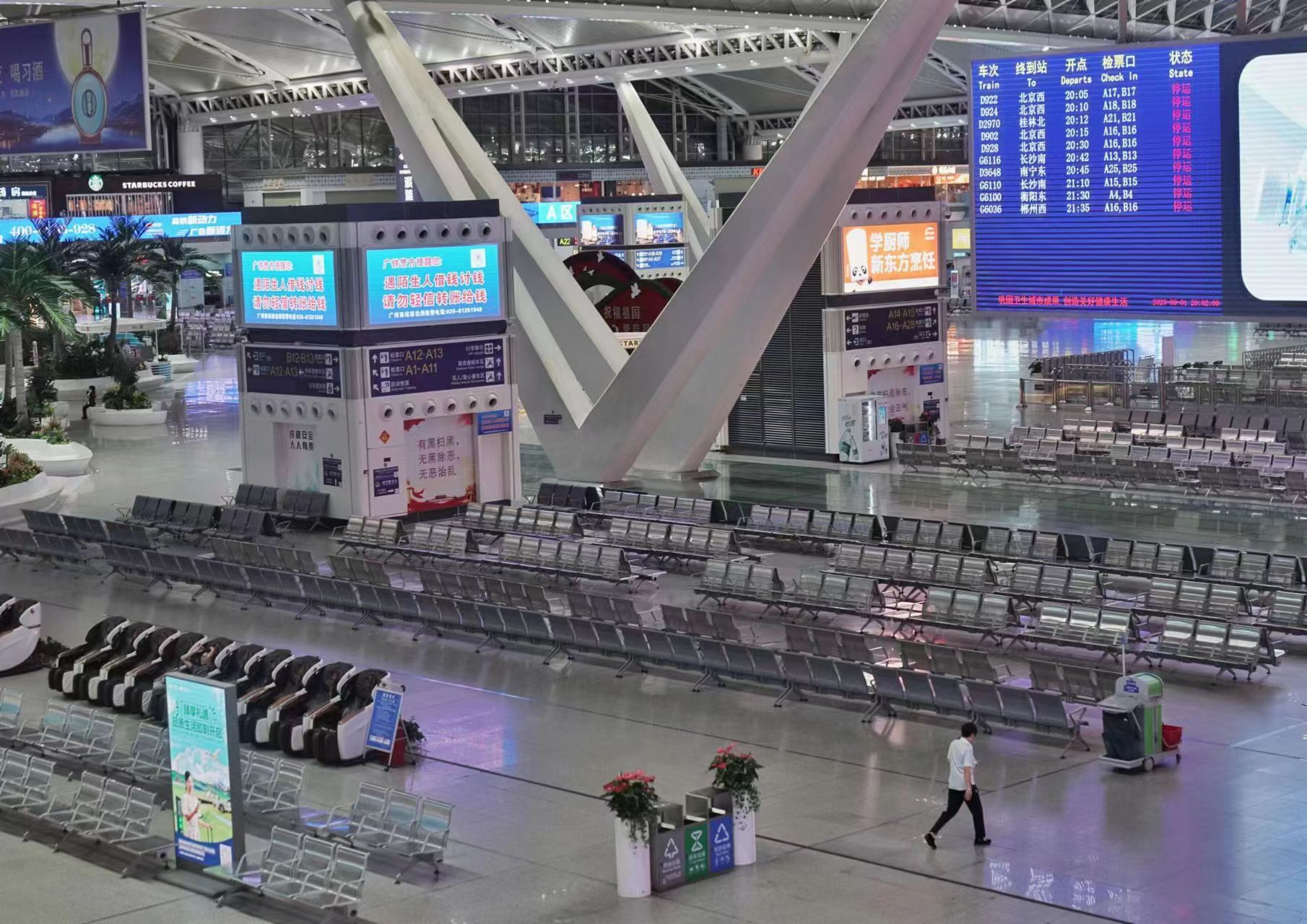9月1日晚八点,广州南站已停开所有列车,候车大厅内空空荡荡没有乘客。记者 石磊 摄