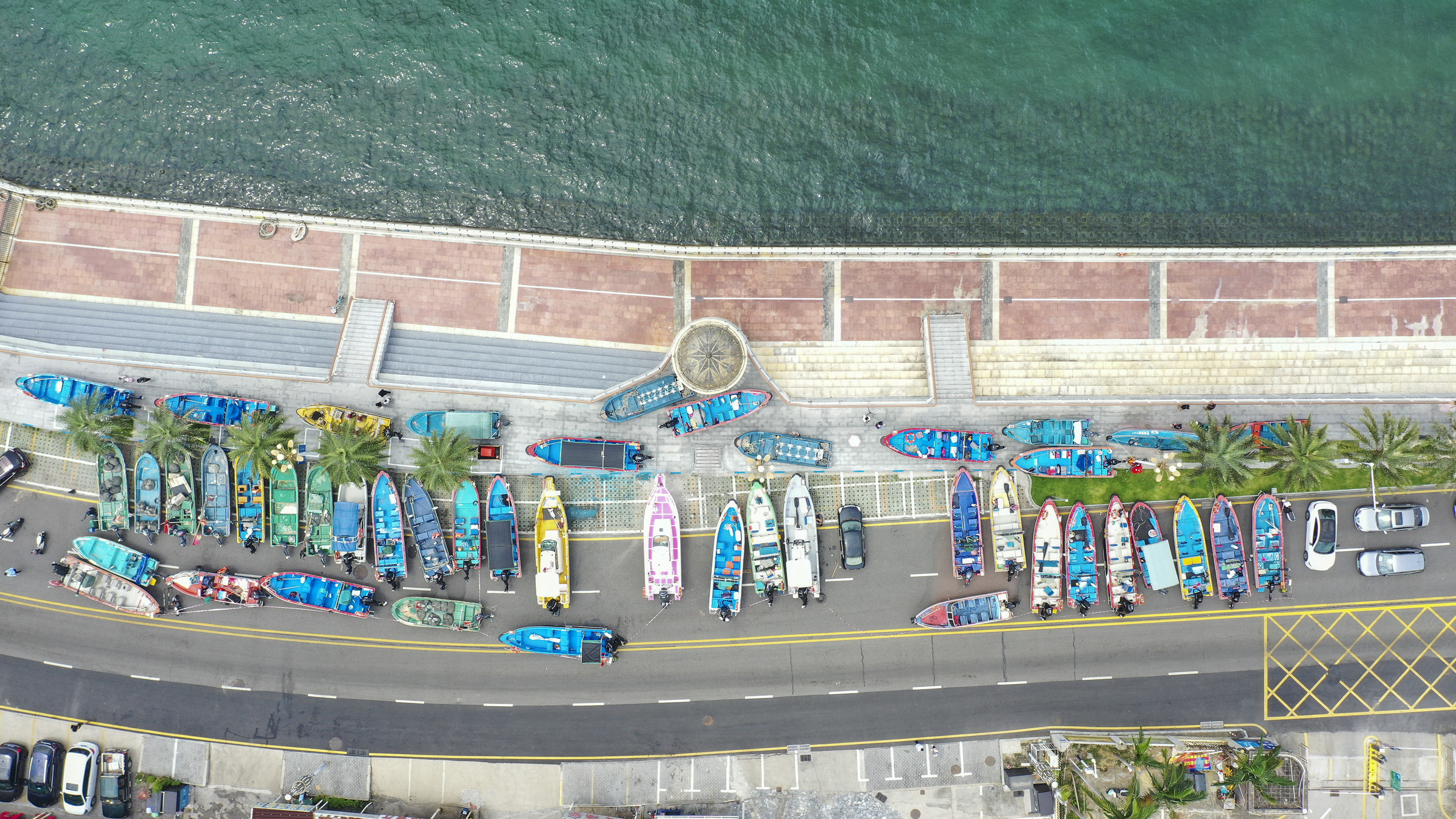 防御台风“苏拉”,深圳大鹏新区南澳月亮湾海港路,各类船舶已经完成吊装上岸,一些渔民正在用缆绳加固渔船。大鹏新区南澳办事处辖区422艘渔船、430艘休闲船舶已全部回港避风。记者 朱洪波 摄