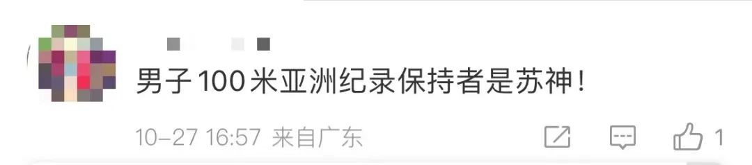 10月27日,亚洲百米纪录保持者