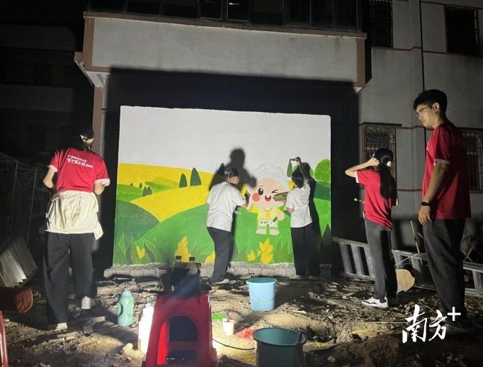 尤为引人注目的是该团队在广东省“百县千镇万村高质量发展工程”典型村培育对象鳌江镇石丁村进行的系列主题墙绘创作。为了避开当地白天35度以上的酷暑高温,保障工作安全和效率,师生们主动调整作息,选择在凌晨微曦和夜晚清凉时分挥动画笔。帮扶工作队积极协调资源、提供便利,全力支持墙绘工作。师生们每天挑灯夜战,在灯光下细致勾勒“鳌江四宝”的生动形象。不少村民主动为师生们打灯照明、借用工具,共同绘就了师生与村民合力美化家园的温馨画卷。这些融入“鳌江四宝”IP的墙绘,不仅美化了村容村貌,更成为深受村民喜爱的“文化地标”。