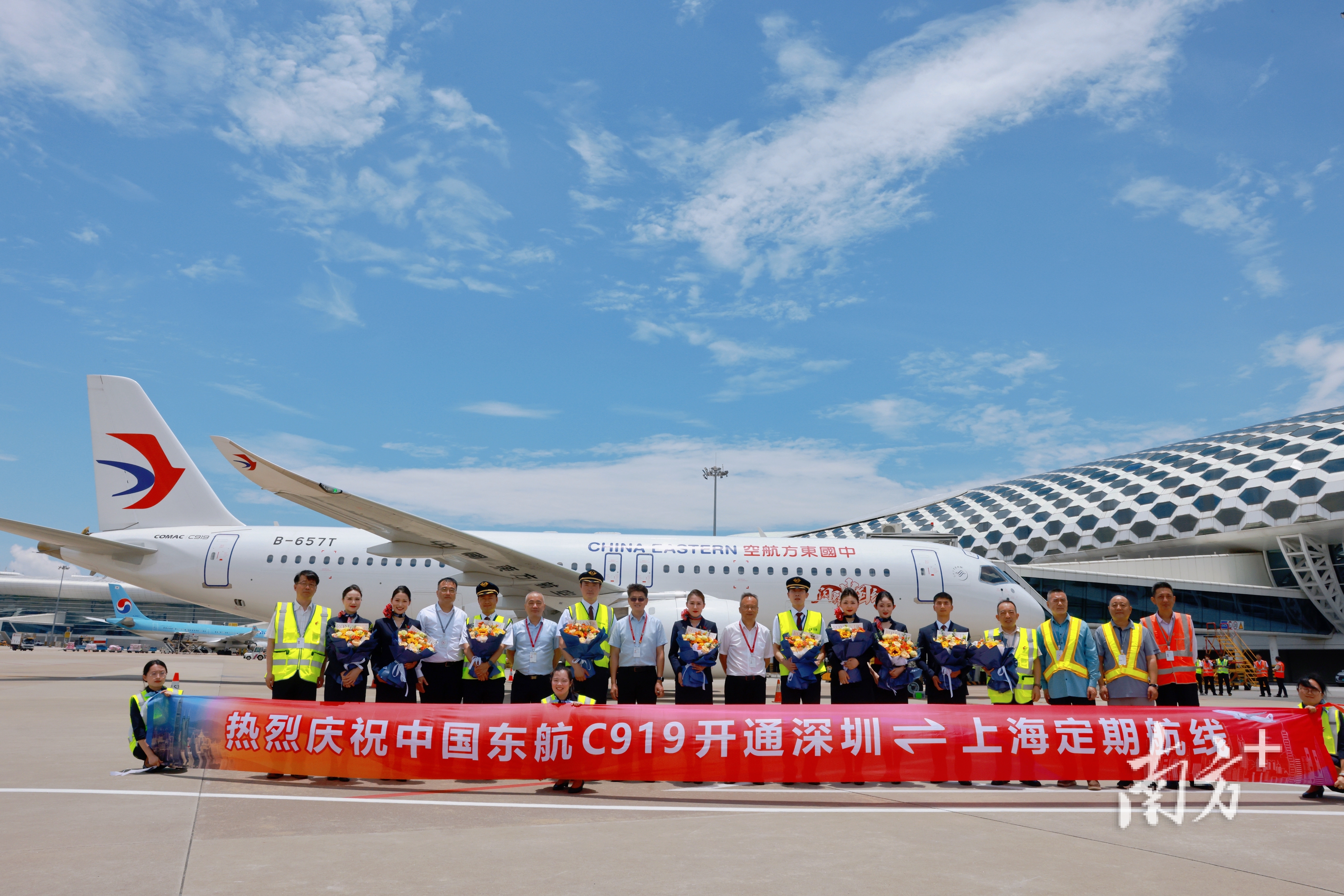 5月18日,东航C919客机再添一条定期商业航线!当天上午,机号为B-657T的国产大飞机C919执行MU5331航班,上午9:28从上海虹桥国际机场起飞,历经近2小时飞行,于11:31顺利抵达深圳宝安机场。这标志着国产大飞机C919正式投入上海虹桥—深圳直达往返航线运营,成为东航C919客机开通的第13条定期商业航线。当日,往返首航航班均接近满座。