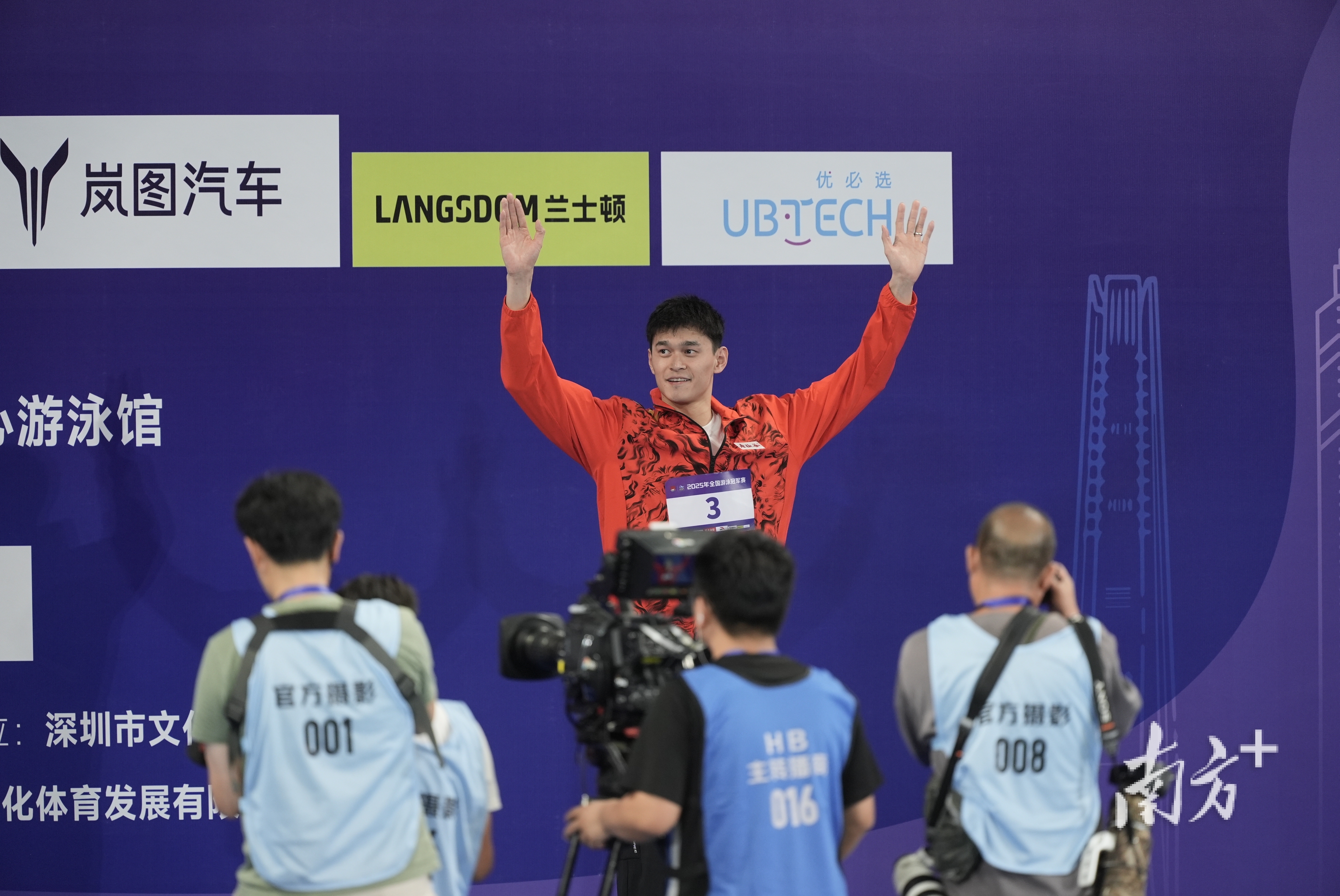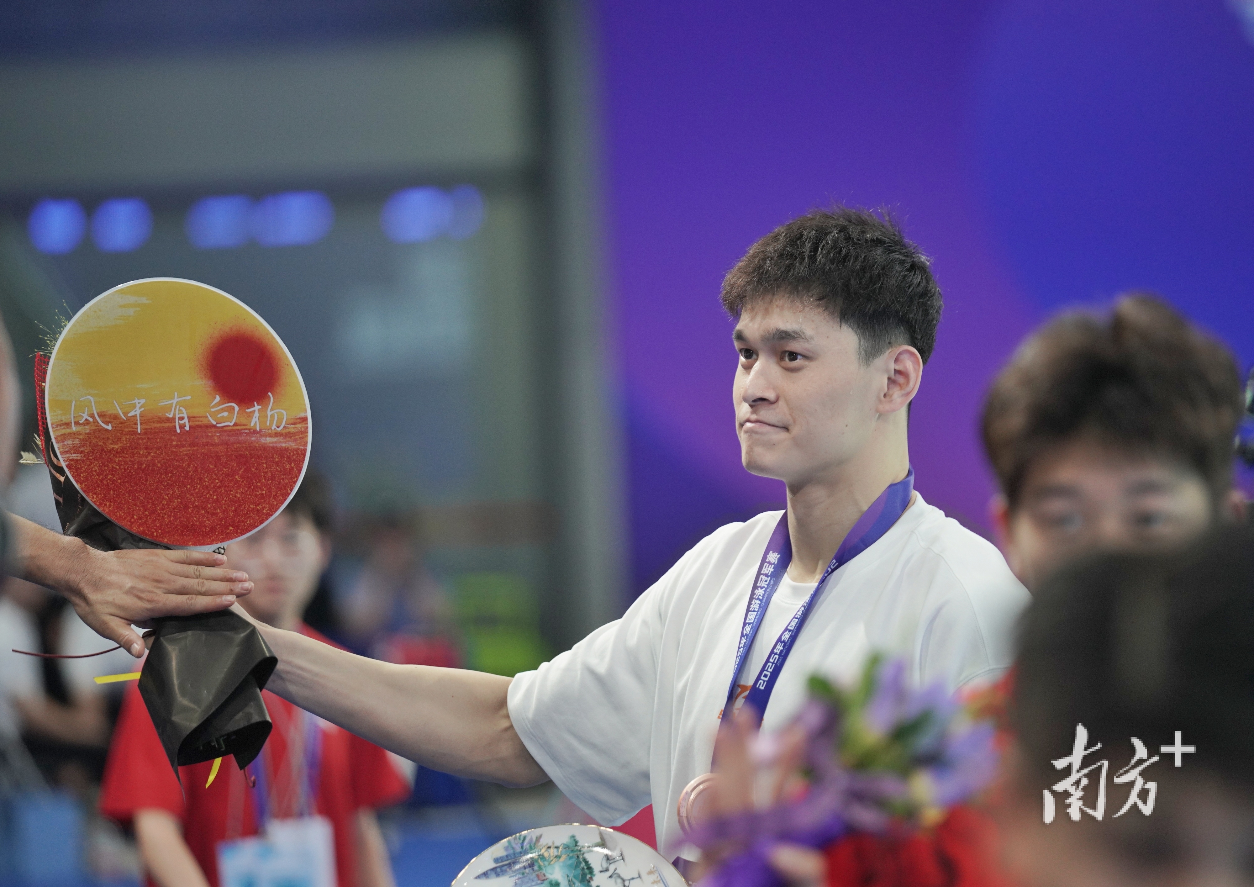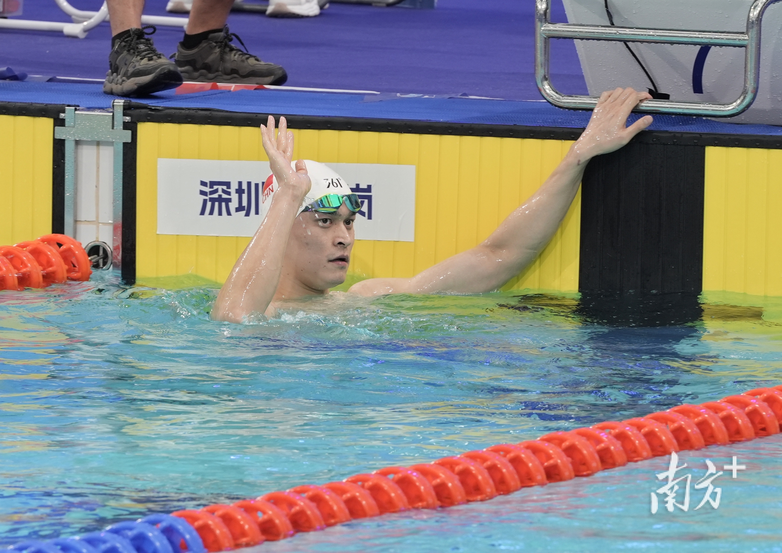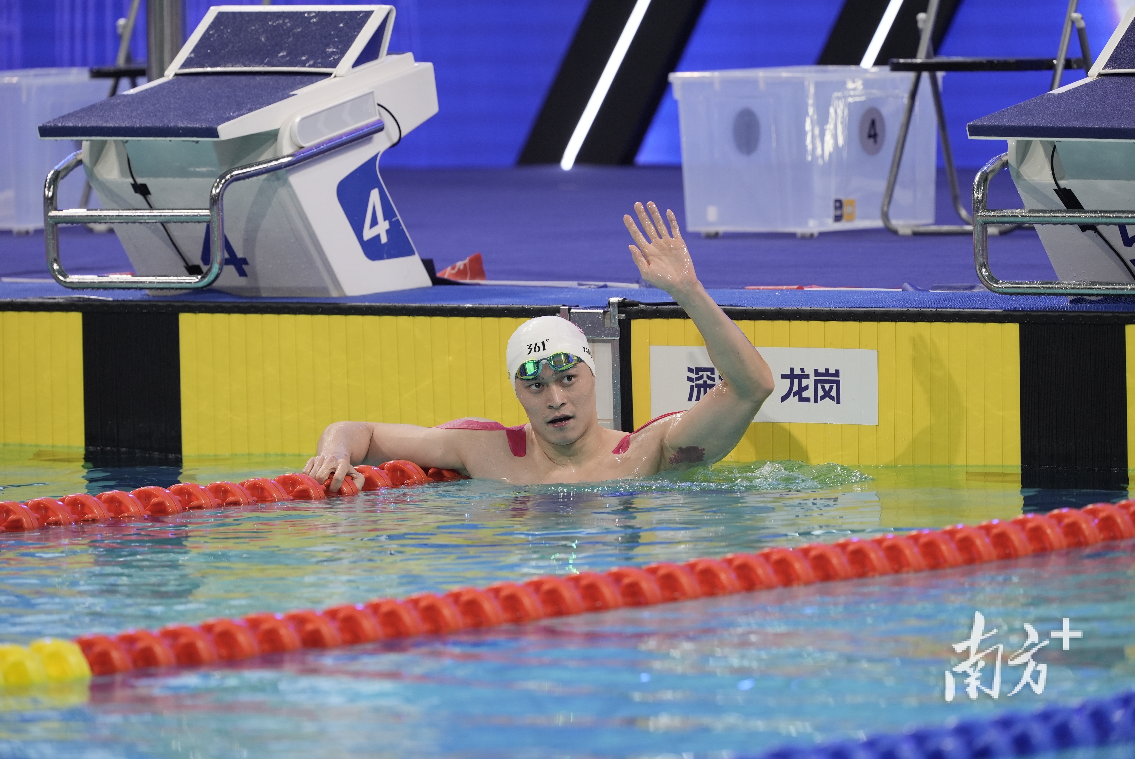 赛后,孙杨站在岸边,看着大屏幕上的赛果久久不忍离去。在混采区,南方+记者留意到,他主动和身边的潘展乐握手致意。对于这位“来势汹汹”的“后浪”,孙杨希望他能够在自己的泳道上开心快乐地游下去:“他已经站在游泳运动员的最高峰,作为老将我能做的就是坚守泳坛,陪伴他们成长。”
