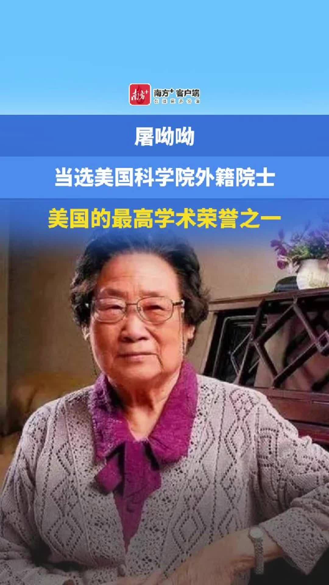 屠呦呦当选美国科学院外籍院士,美国的最高学术荣誉之一