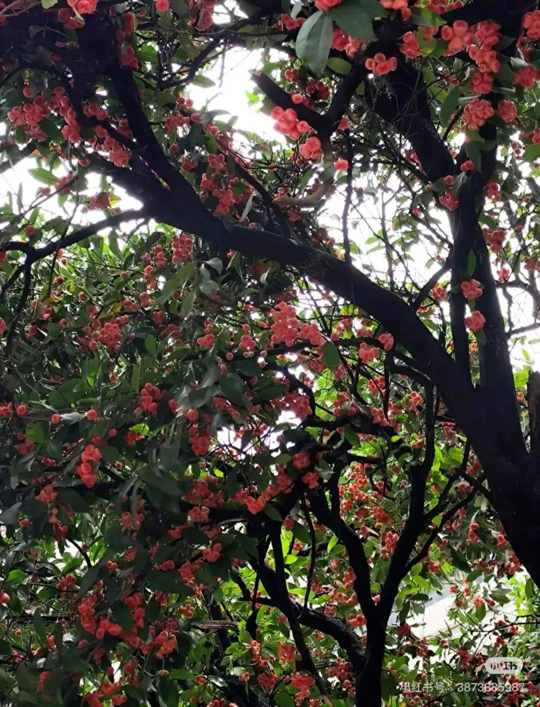 树上结满了诱人的果实粉粉的,像小铃铛一样,闻起来也很香甜,很难让人不动心。