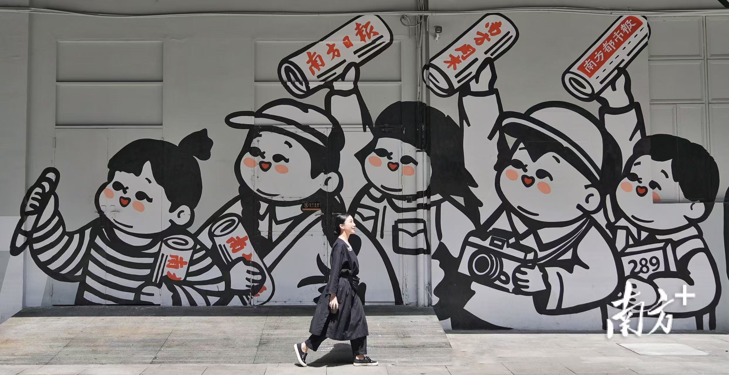 289艺术园区有两面“媒体墙”:一面是园区南面连接报社大院的浮雕墙,刻画的是满身泥泞的摄影记者在1998年记录军民抗洪抢险的形象,它取自新闻行业著名摄影作品《我是记者》;另一面是园区中庭小广场的绘画墙,由香港知名设计师邓卓越将中国传统年画中的胖娃娃IP形象与南方报业元素融合,演绎主流媒体别样风采。