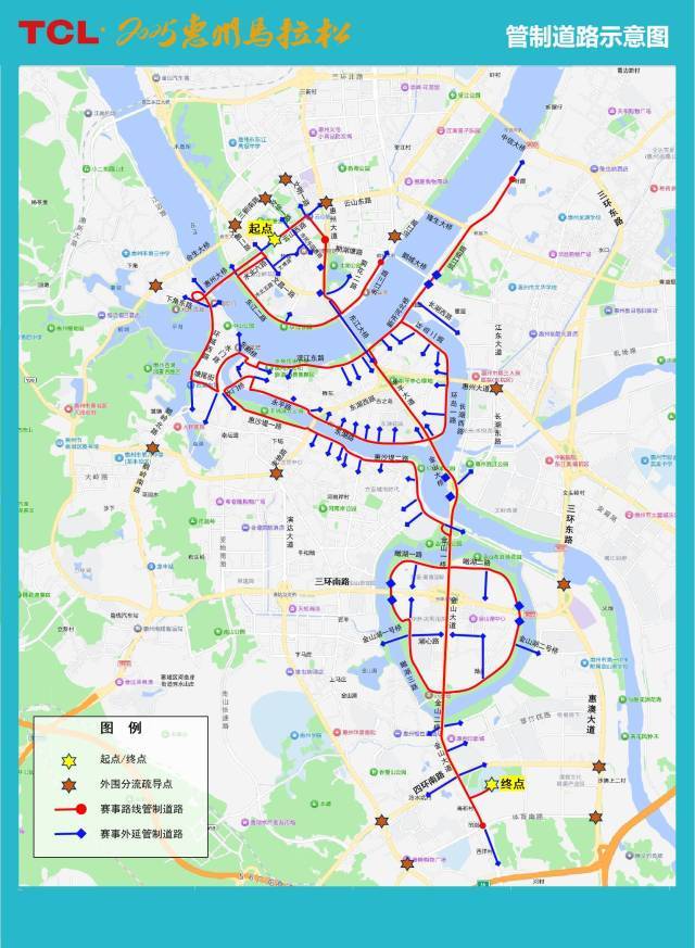 (3)▶️7时00分对水口片区览江南路,桥西片区惠沙堤一路,河南岸片区惠沙堤二路、瞰湖三路、湖畔南路、瞰湖一路、瞰湖二路、金山大道、金山一桥、金山二桥、惠州奥林匹克体育场西门等涉马拉松赛事道路及外延道路开始实施交通管制。