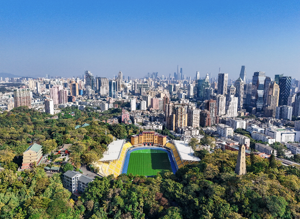 凭栏眺望,脚下的越秀山体育场曾举办过六运会、亚运会足球赛,如今又将见证十五运的荣光。