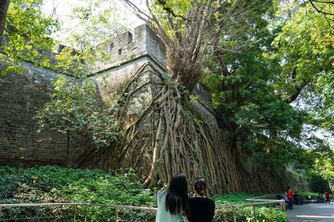 再往前,火炬的光跃上明代古城墙,照亮老榕树与古城砖的岁月交织。