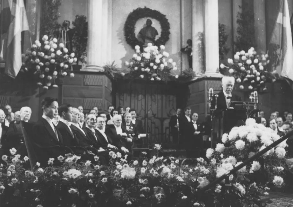 1957年,杨振宁和李政道在瑞典皇宫领取诺贝尔物理学奖。 资料图