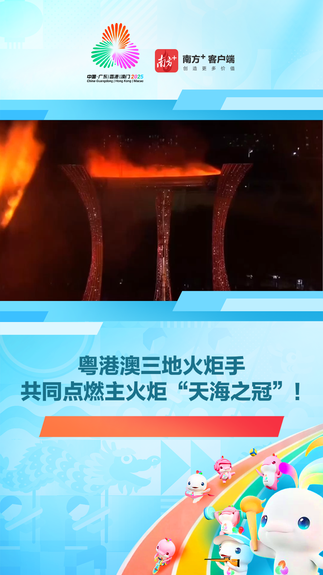 粤港澳三地火炬手共同点燃主火炬“天海之冠”!