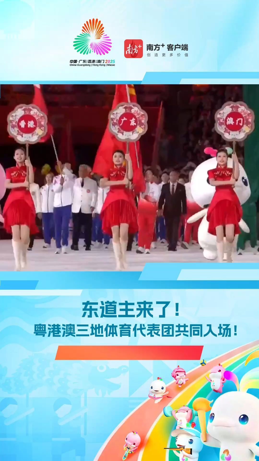 粤港澳三地首次携手承办全运会,这是“一国两制”框架下体育领域的重大创新。东道主广东、香港、澳门体育代表团入场,掀起全场高潮。