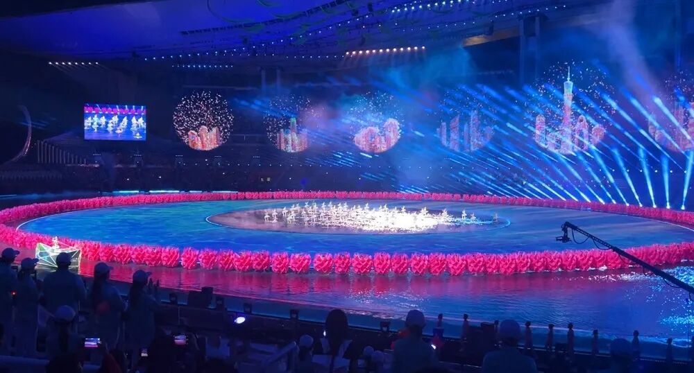开幕式紧紧抓住与粤港澳密切相关的“水”这一元素,别出心裁地“把大海请进体育场”。