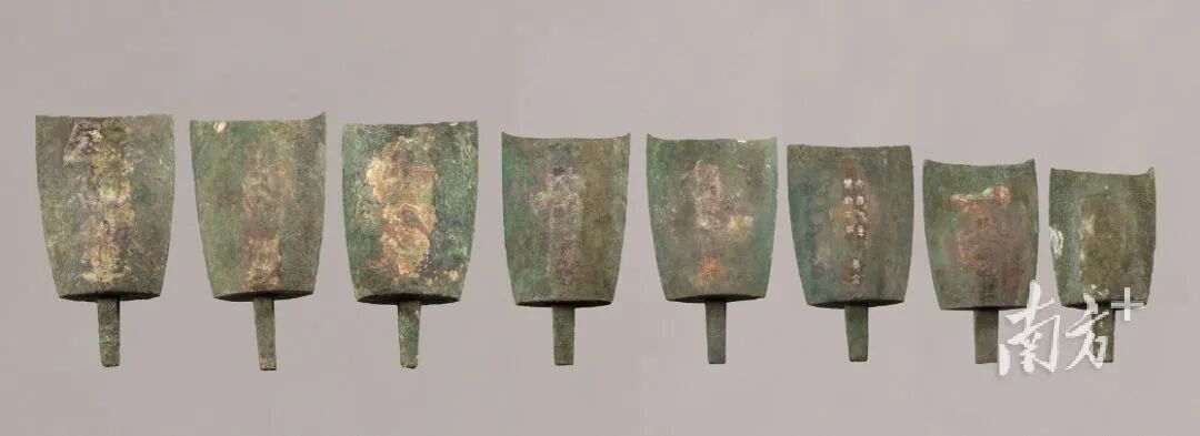 这套铜句鑃文物原型一套八件,重191公斤,七声音阶齐全,是岭南首次发现的大型越族打击乐器,距今超过2000年。