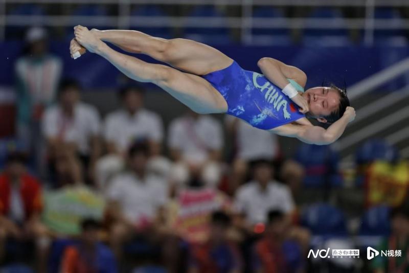 谢佩铃准备起跳。南都N视频记者黎湛均徐杰摄在随后进行的单人10米台比赛中,来自华南理工大学的大运会冠军王伟莹也表现出色,五轮过后以372.70分排在第一位,以1.95分的优势险胜第二名四川选手卢为,另一位广东选手谢佩铃以359.90分夺得了第三名。如此一来,广东队在上午的两个项目比赛结束后,取得的成绩在所有队伍中名列前茅。