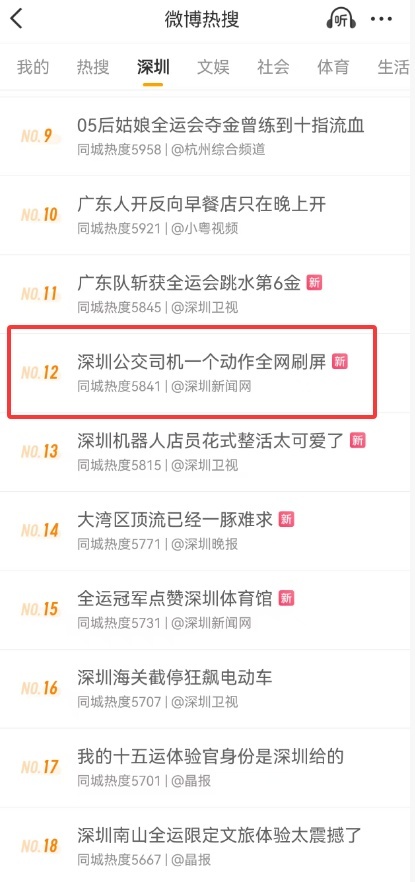 “为深圳的公交司机点赞”