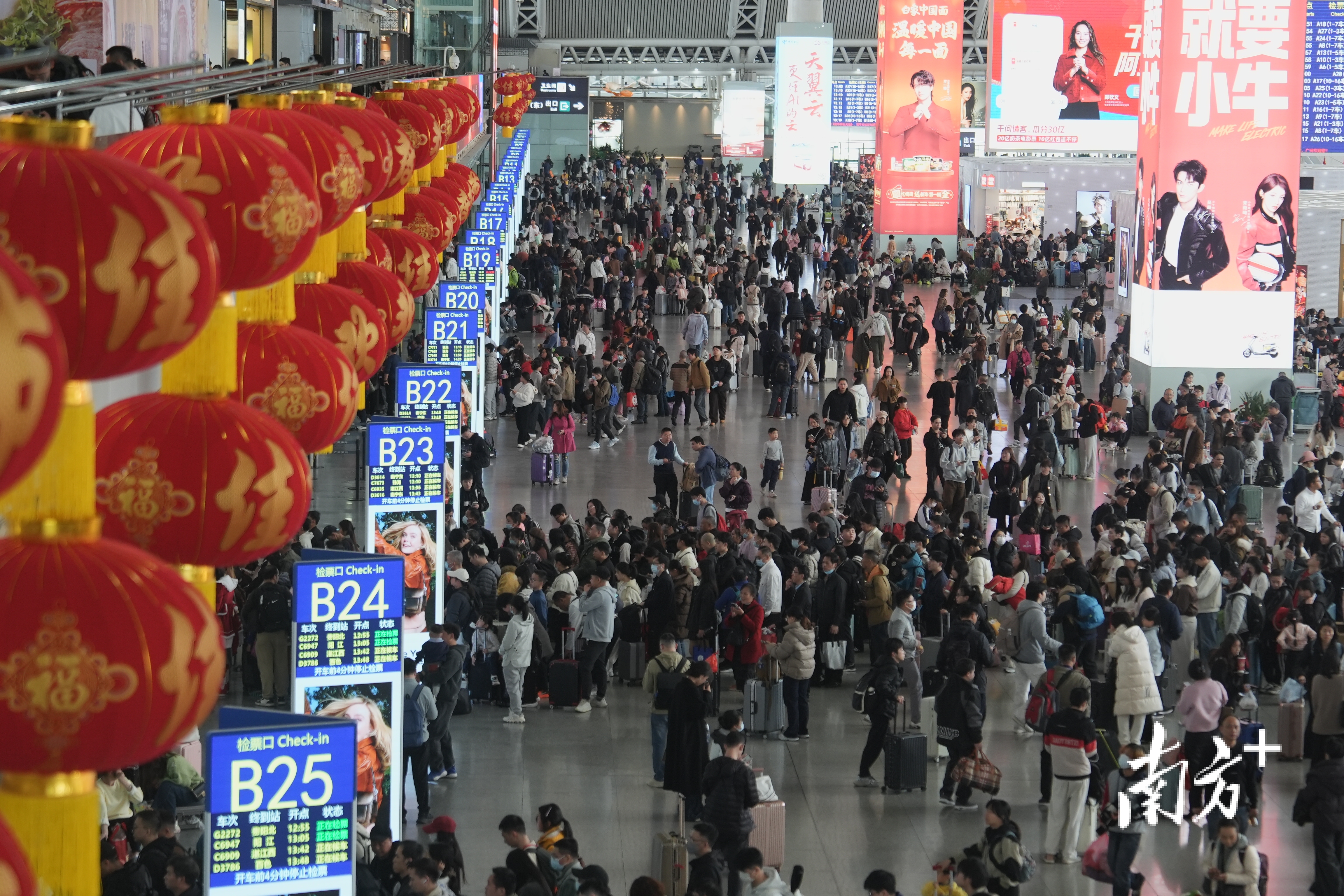 2月9日,春运期间的广州南站人声鼎沸,归乡的脚步踏响团圆序曲。候车厅内红灯笼高悬,暖意萦绕归途,来自五湖四海的旅客带着广货奔赴家的方向。