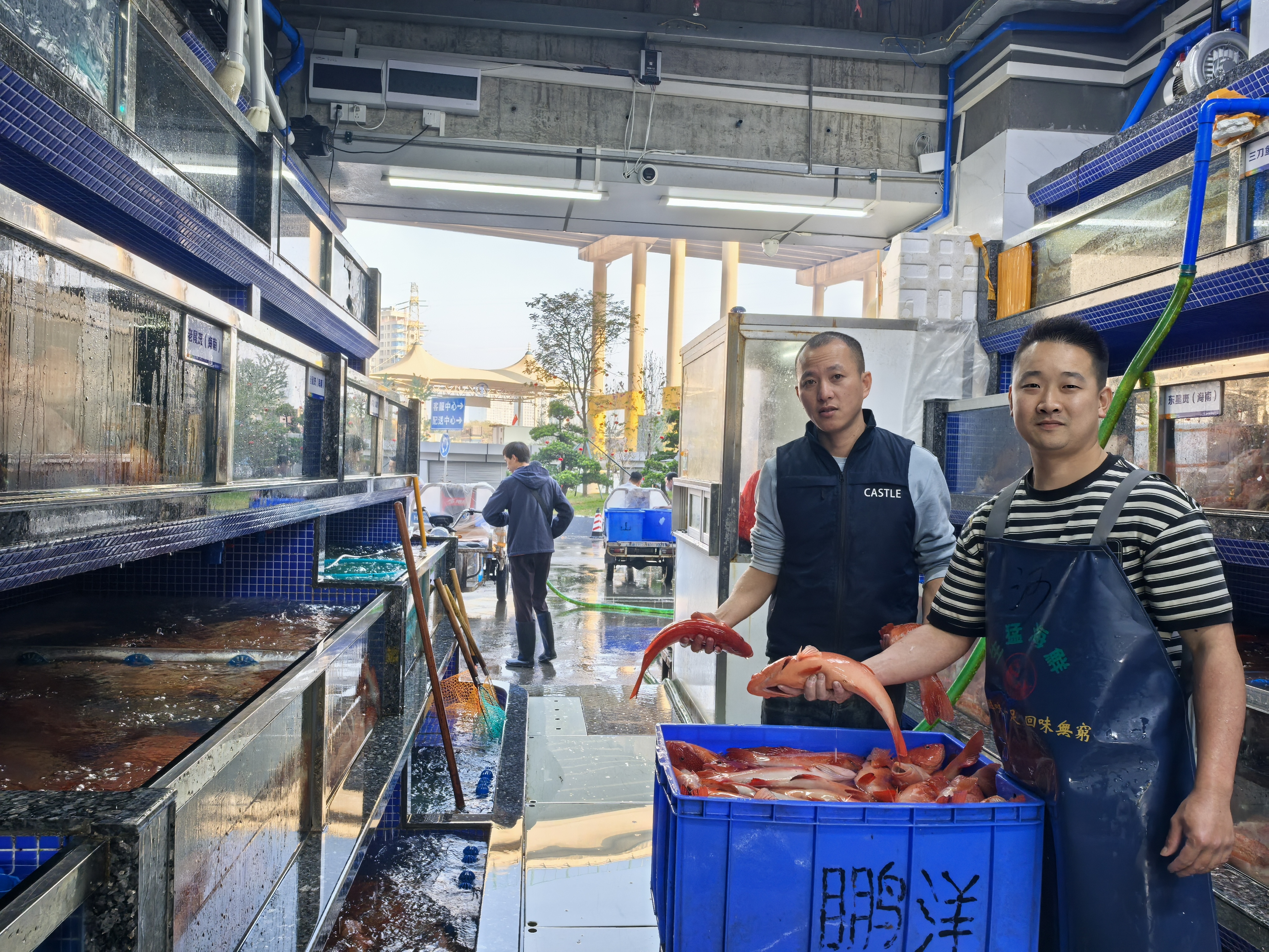 “做海鲜这么多年,最幸福就是大家吃自己供应的好食材。”黄建立笑着说,灯光映在他疲惫却满足的脸上。
