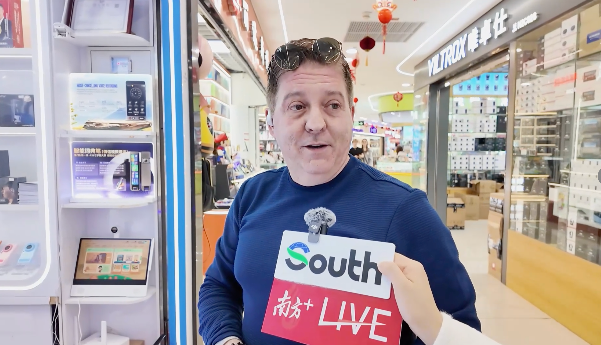 如今走在华强北街头,依然随处可见拖着行李箱来回“扫货”的外国朋友。他们的箱子里,究竟藏着哪些科技好物?在他们眼中,“广货”又有怎样独特的魅力?近日,南方日报、南方+记者走上华强北,随机采访了来自英国、美国、智利、斯洛文尼亚等国的游客,收获的答案令人惊喜——对“广货”的喜爱,甚至让他们深深爱上了中国。