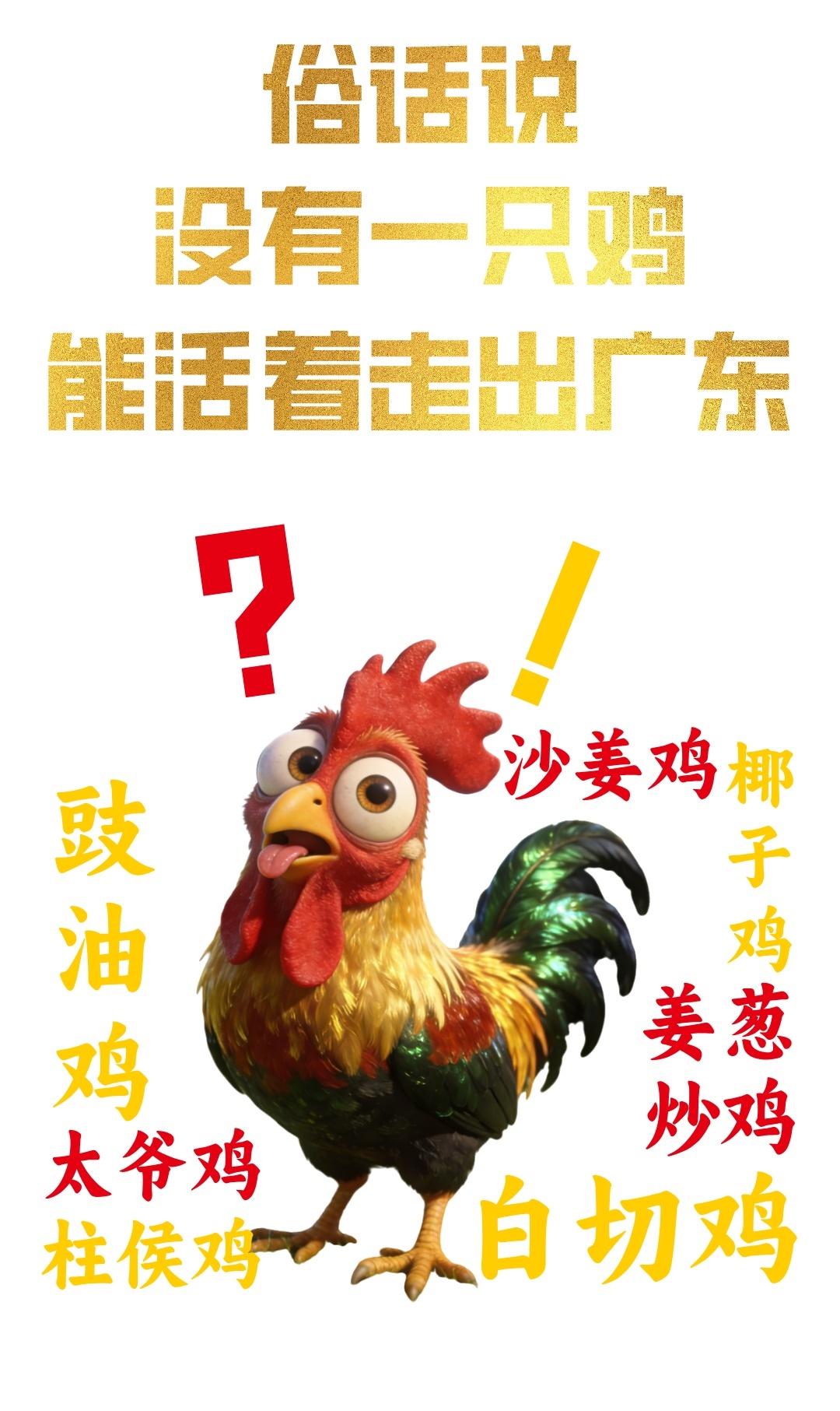 鸡,不仅是广东人餐桌上的 “团宠”,更是逢年过节、喜庆团圆时必不可少的 “硬菜”。尤其是在年夜饭的餐桌上,鸡谐音 “吉”,寓意 “大吉大利”,承载着人们对新年顺遂安康的美好期许。
