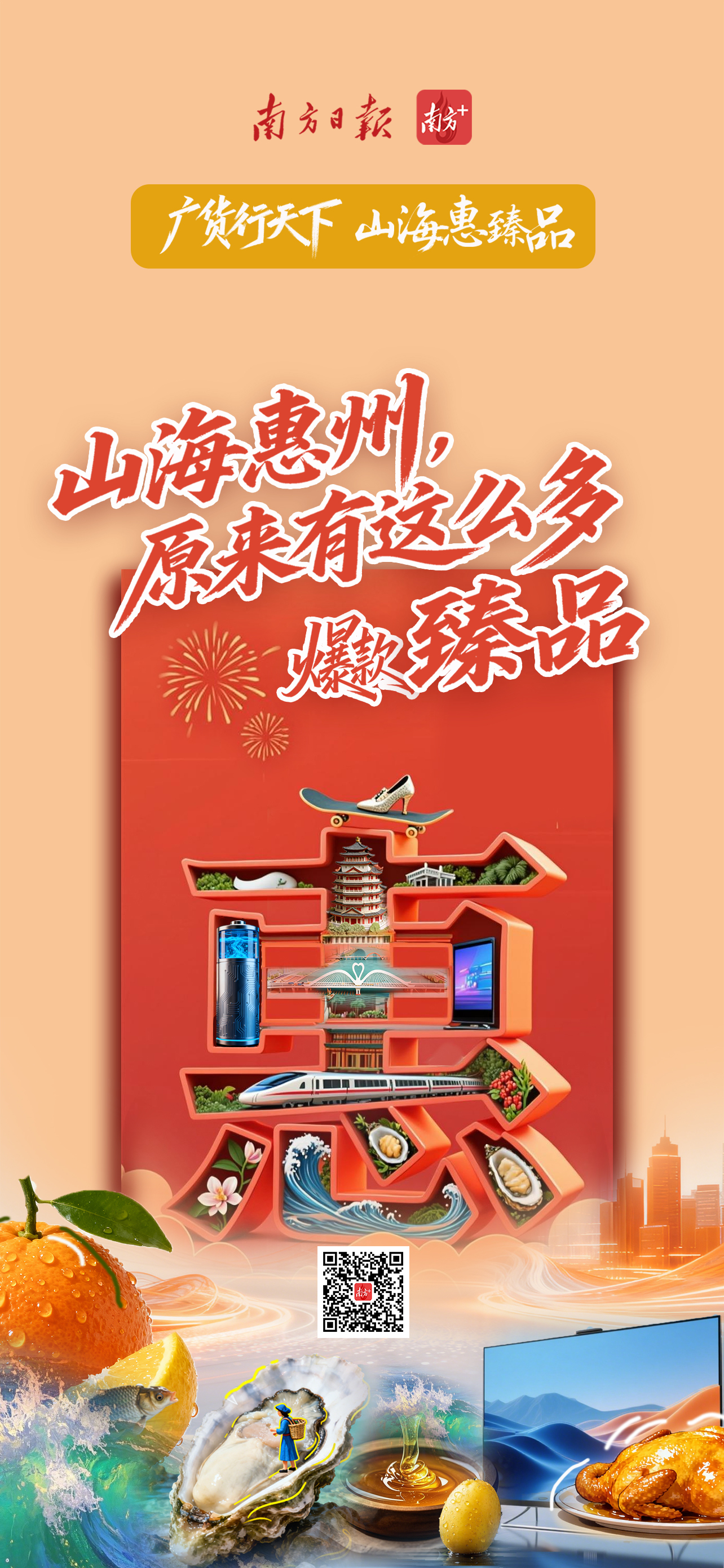 为此,南方报业传媒集团惠州分社推出特别策划《广货行天下·山海惠臻品》,紧扣“山货”“海货”“制造者”,把镜头对准一线产品、企业和制造者(种植者),记录惠州以实干作答“广货行天下”的生动实践。