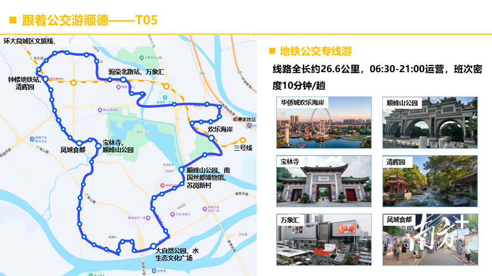 接着是便捷高效的公交网助力实现顺心畅游。为解决文旅出行“最后一公里”难题,春节期间,顺德将开通“长鹿农庄-顺峰山公园”文旅线 (T01)、“欢乐海岸-南岸公园”文旅线 (T02)、“北滘公园-博智林总部”文旅线 (T03)、“番禺-大良城区”文旅快线 (T04)、环大良城区文旅线 (T05)等5条公交文旅专线。