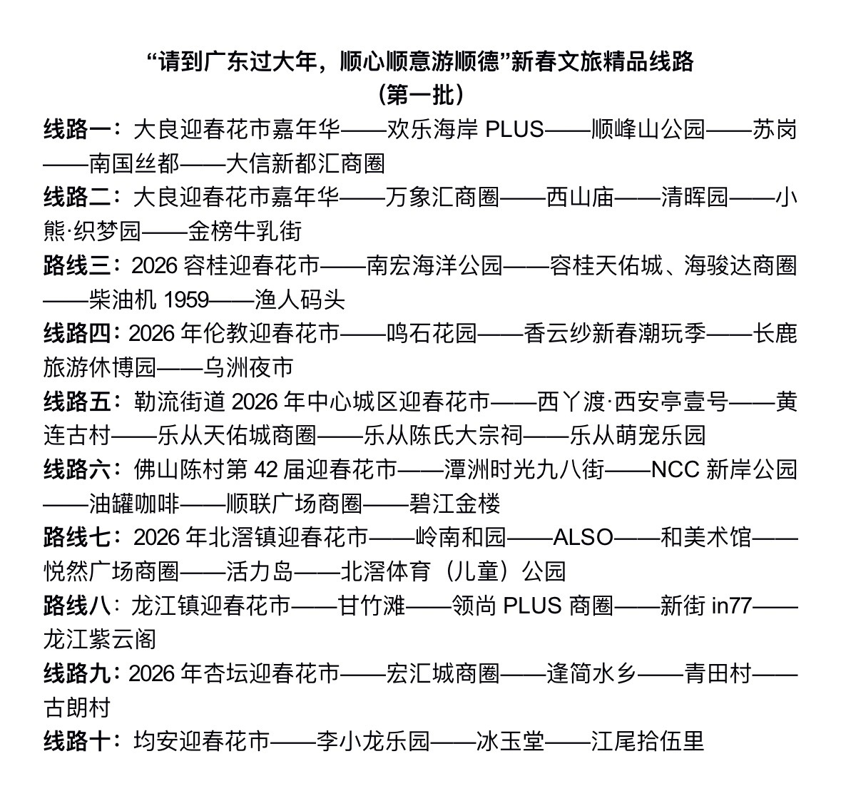 而为了方便游客畅游,顺德还精心策划了第一批共十条新春文旅精品线路,以各镇街迎春花市为起点,串联起区内核心景点、美食聚集地与繁华商圈。