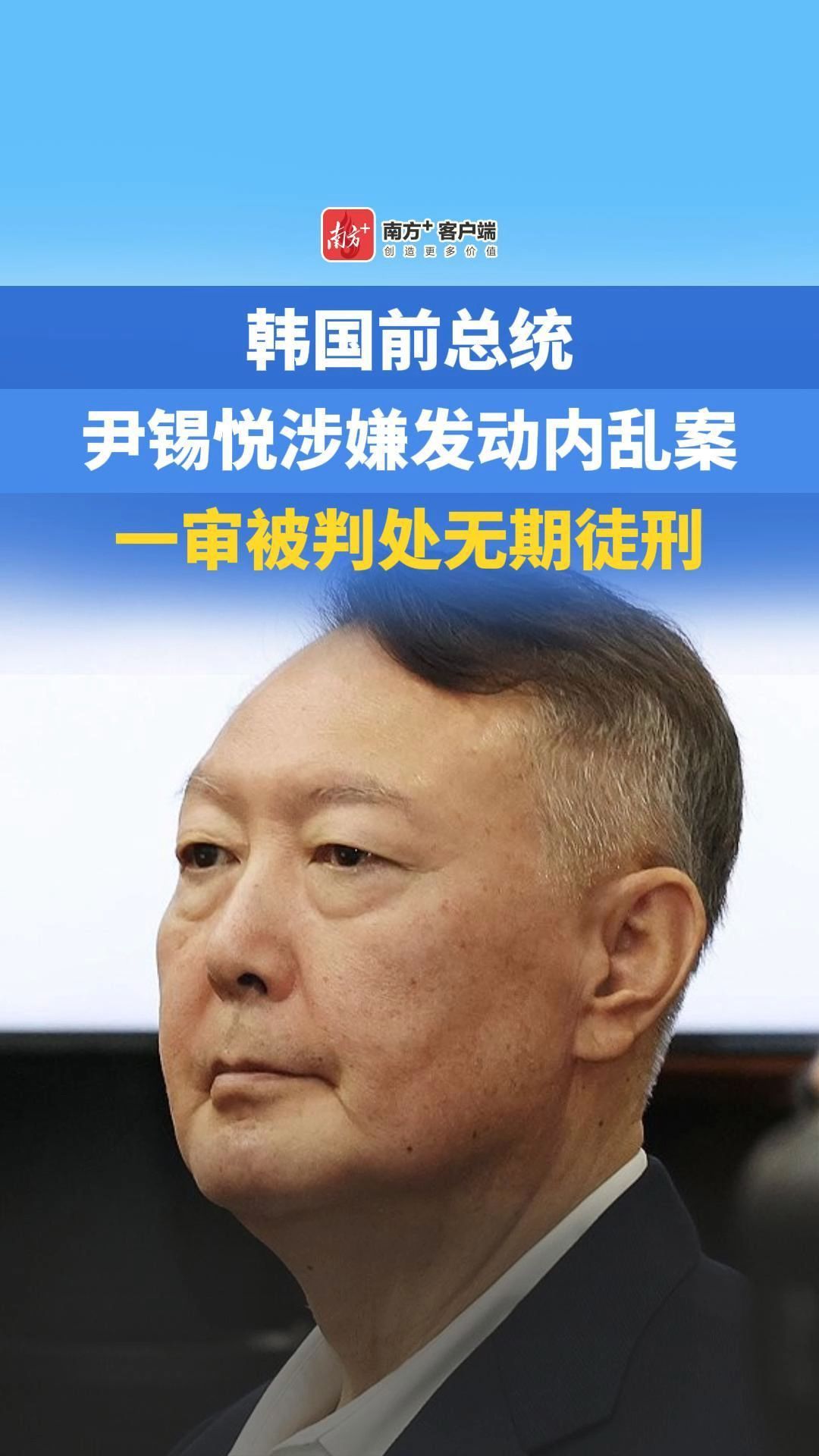 韩国前总统尹锡悦涉嫌发动内乱案一审被判处无期徒刑