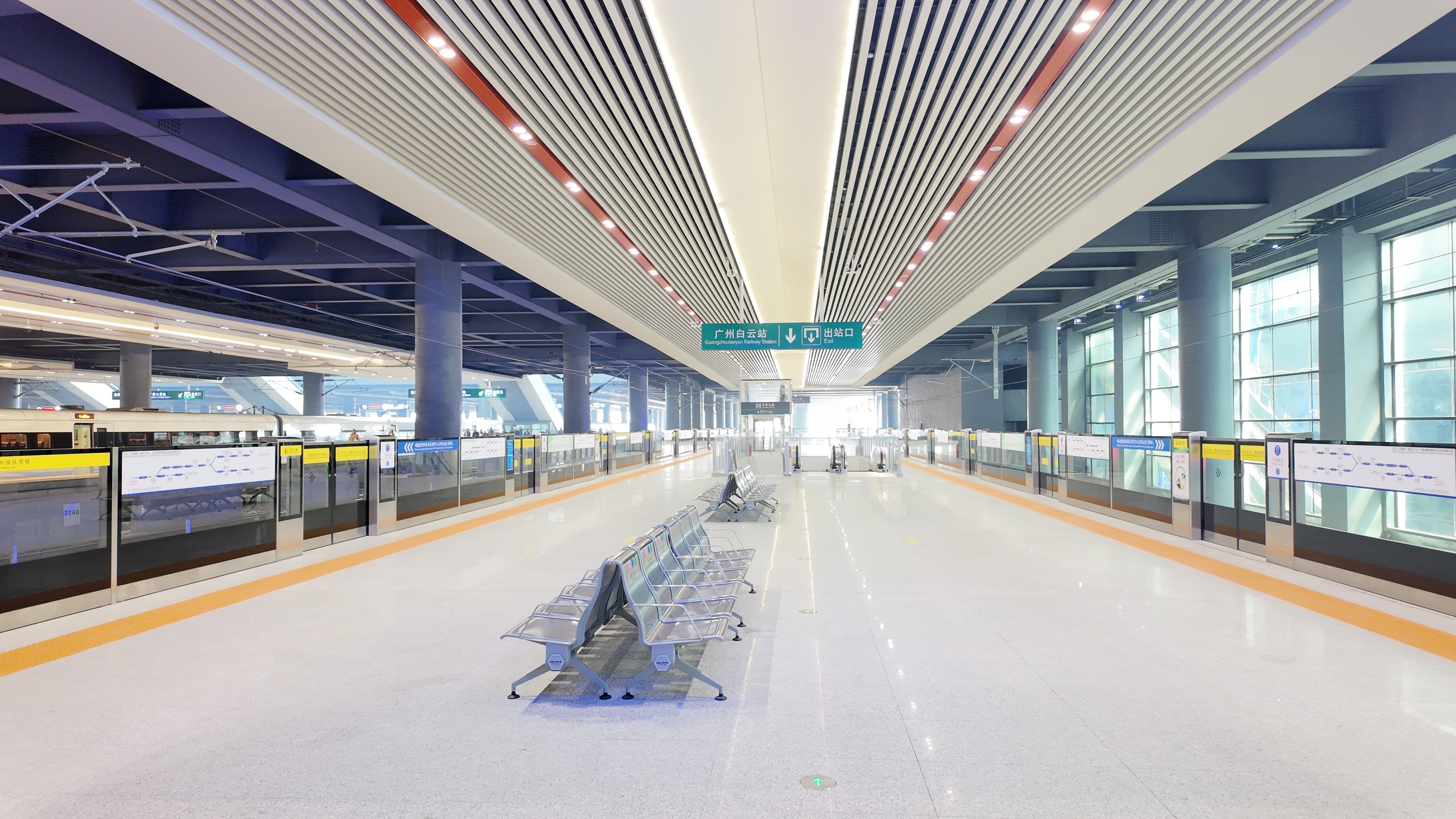 当天,广州地铁十二号线广州白云站E、J口开通使用。E、J口均为单向出入口,是广州白云站地铁与城际铁路的便捷换乘出入口。搭地铁的旅客从E口出闸后可通往城际广州白云站,从城际广州白云站出闸的旅客可以从J口直接进入地铁广州白云站。