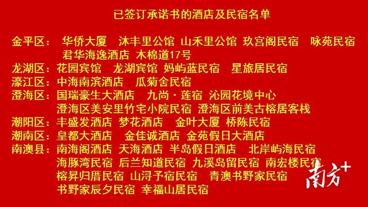 汕头市发改局、汕头市商务局、汕头市文化广电旅游体育局、汕头市市监局等职能部门表示,将联动推进行业自律,发挥星级酒店、旅游民宿的示范引领作用,倡导守法诚信经营、明码标价,严肃规范经营收费行为,不断提升服务供给品质,让春节来汕的游客住得安心、舒心、放心。