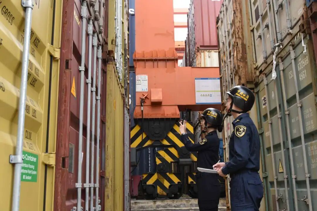 增城海关关员对组合港货物实施监管 陈格菲/摄
